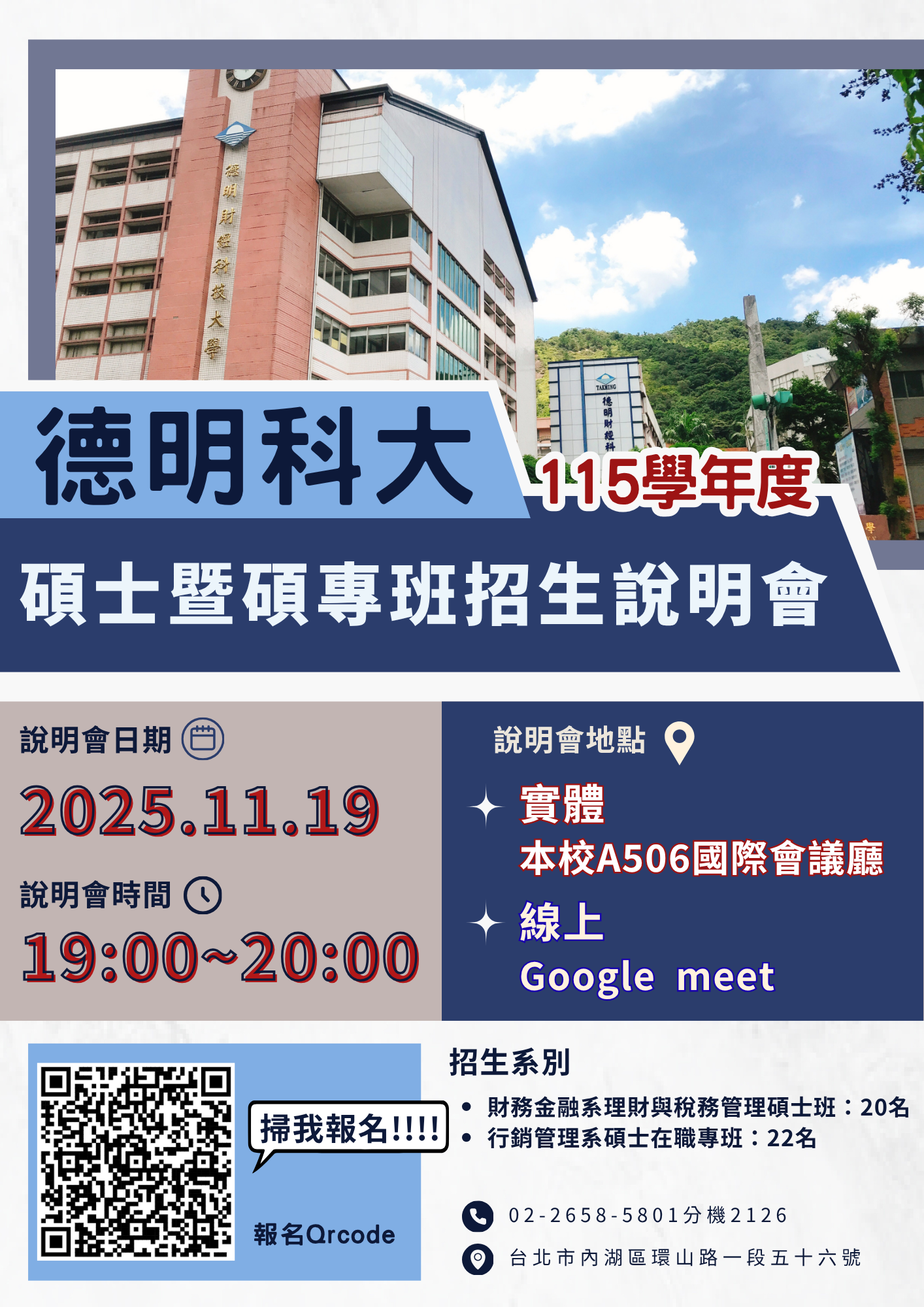 115碩士班甄試入學招生簡章 115碩班招生說明會 115碩士班DM