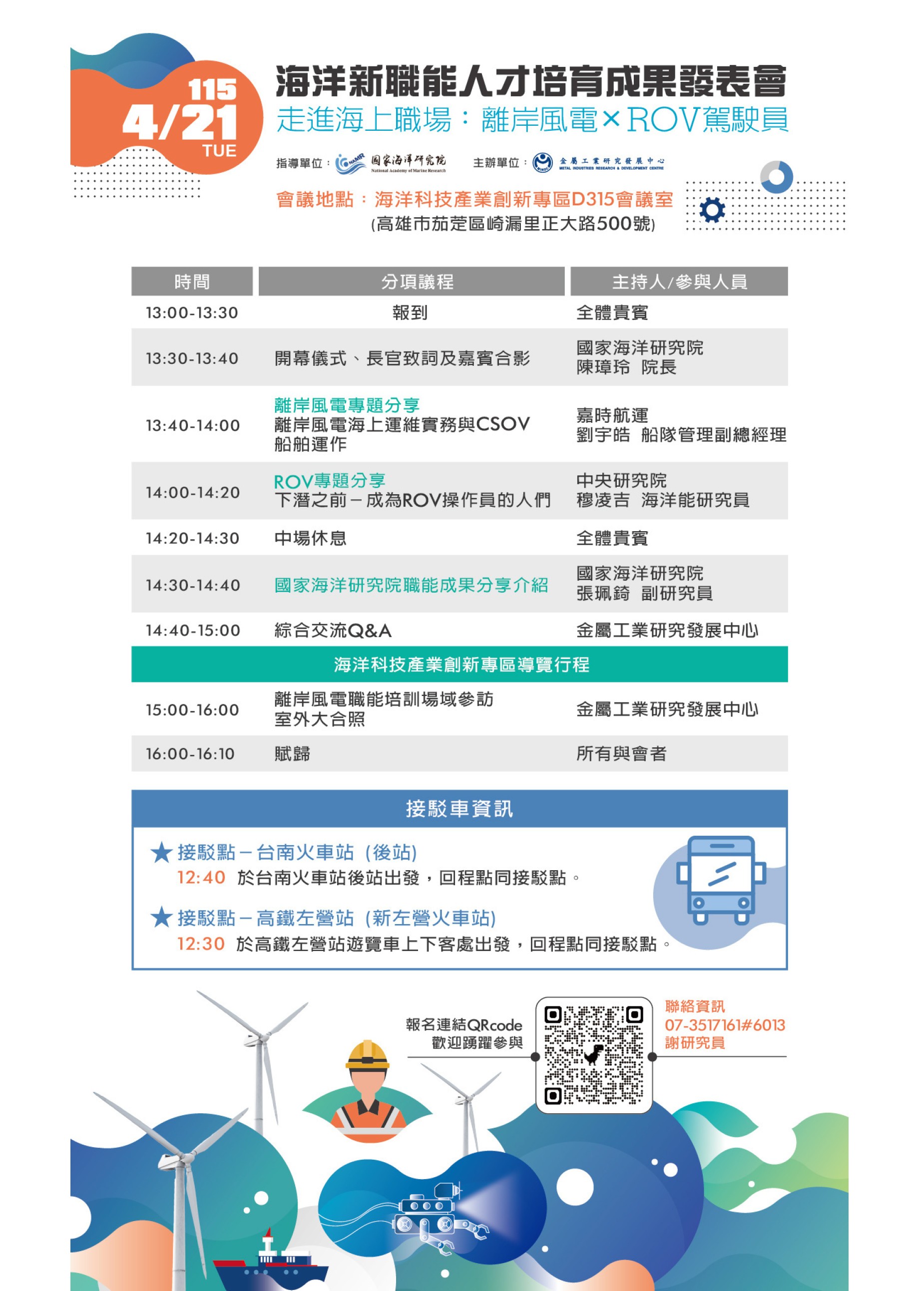 轉知國家海洋研究院辦理「海洋新職能人才培育成果發表會-走進海上職場:離岸風電×ROV駕駛員」,惠請協助轉知所屬學校師生踴躍參加,請查照。