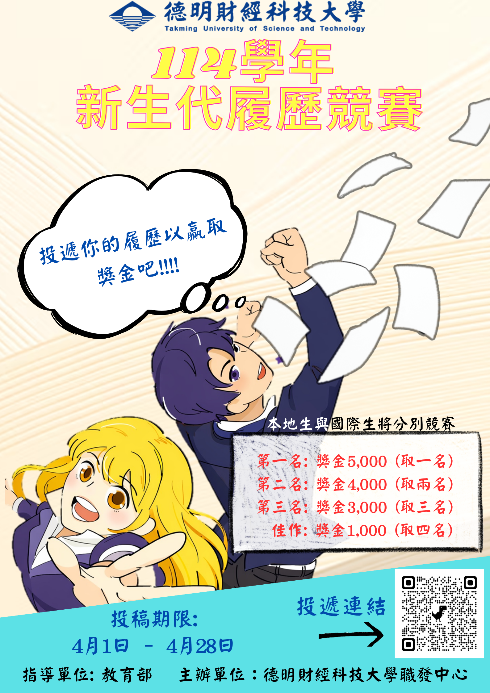 德明財經科技大學《114學年度新世代履歷競賽》 2026/04/01日開放投稿至2026/04/28日止。