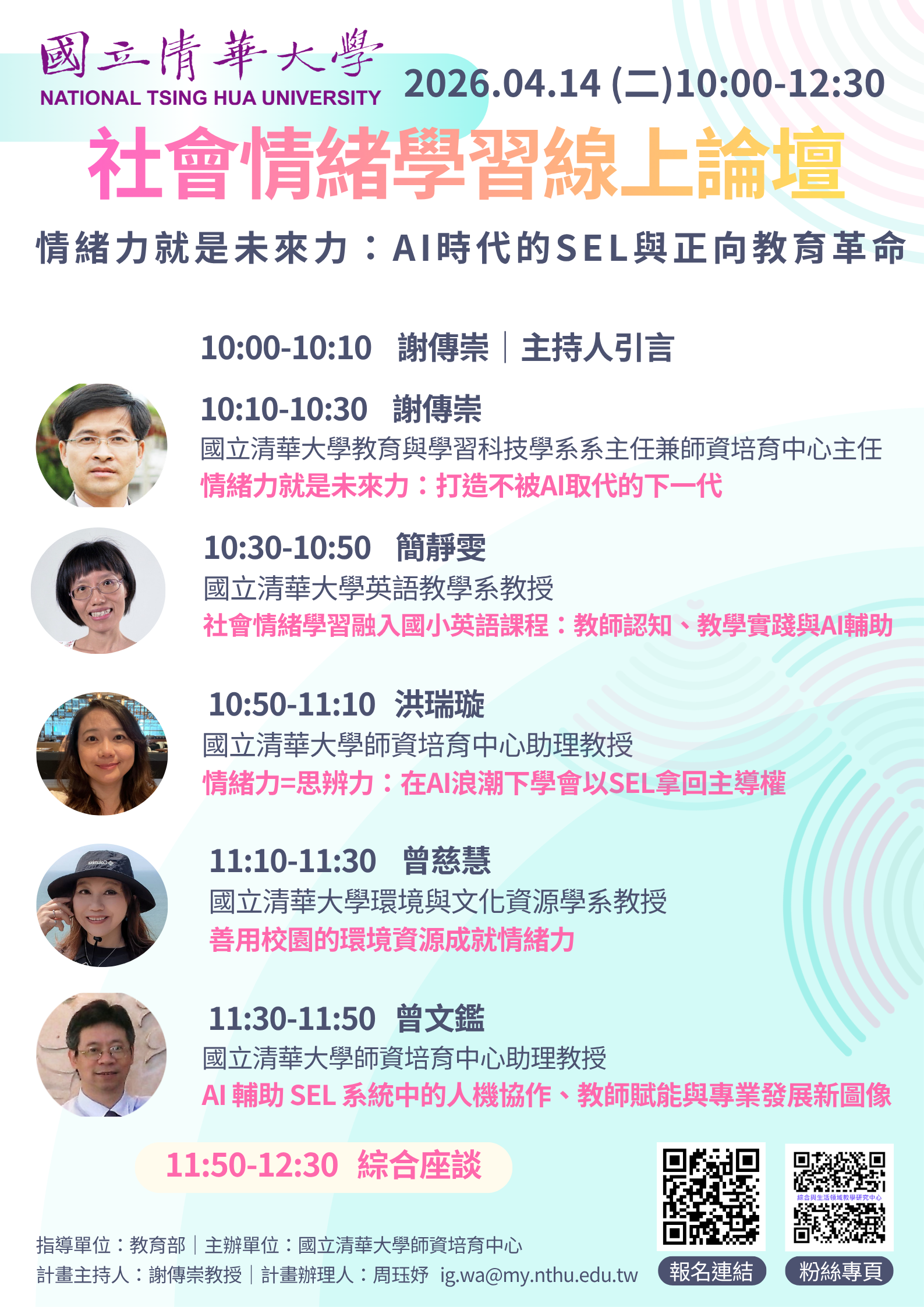 | ¥D¡@¡@¦® | Âા-°ê¥ß²MµØ¤j¾Ç©ó115¦~4¤ë14¤é¿ì²z¡uAI®É¥NªºSEL»P¥¿¦V±Ð¨|²©R¡v½u¤W½×¾Â | ¤½§i | 2026-04-01 | |||