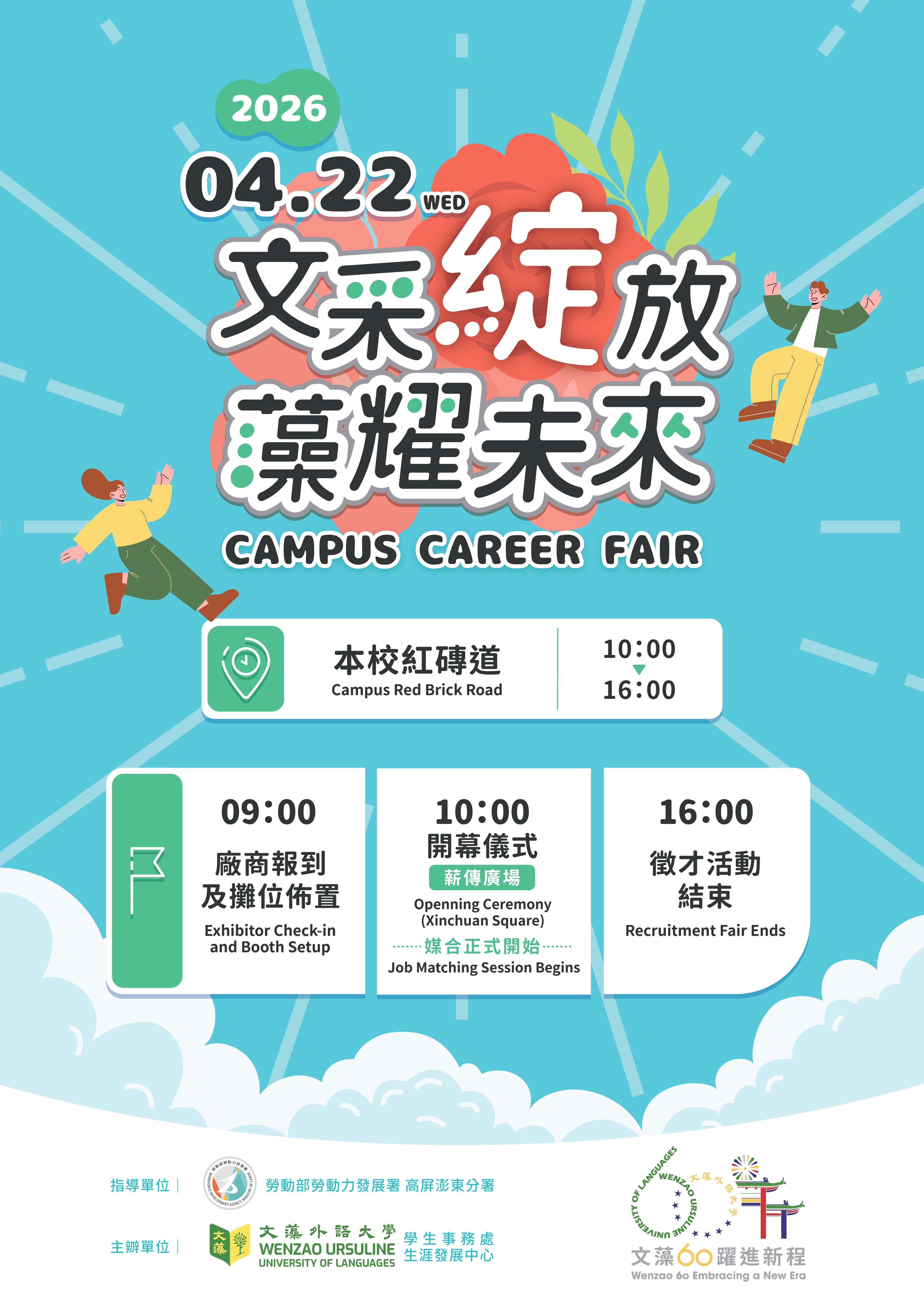 轉知-文藻外語大學「文采綻放•藻耀未來」校園徵才就業博覽會