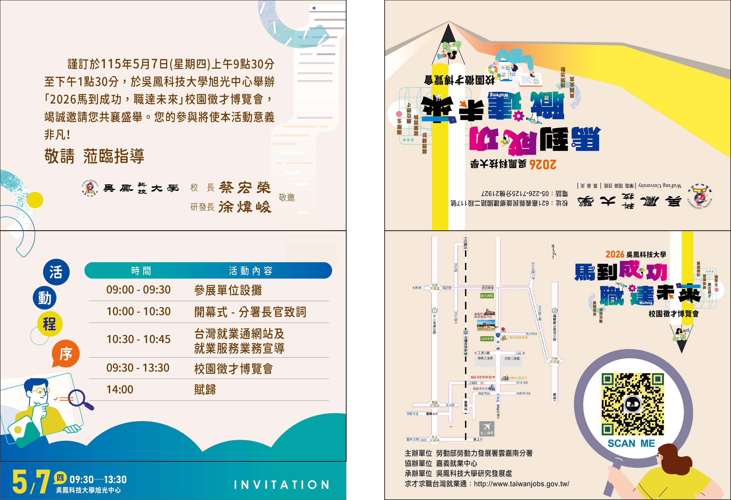 隨函敬附邀請卡、宣傳海報及出席回覆電子檔各乙份,敬邀主管蒞臨開幕典禮揭幕,並請於115年04月24日(五)前將貴賓出席回覆單E-MAIL惠復予本校承辦人員吳昱呈先生。