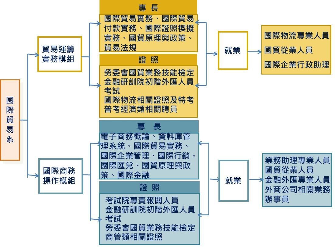 Khoa Thương Mại Quốc Tế nhằm đáp ứng nhu cầu của ngành, và bồi dưỡng nhân tài với năng lực kỹ thuật mang tính thực tế, mục tiêu phát triển là đào tạo các nhân tài chuyên nghiệp toàn diện trong lĩnh vực Thương Mại Quốc Tế, giúp sinh viên làm quen với những kiến thức chuyên môn cần thiết, để giải quyết vấn đề phát sinh liên quan đến thương mại quốc tế, trở thành một nhân tài thương mại mang trong mình năng lực ngoại ngữ, kiến thức tài chính thương mại và kỹ năng vi tính chuyên nghiệp với một tầm nhìn quốc tế.